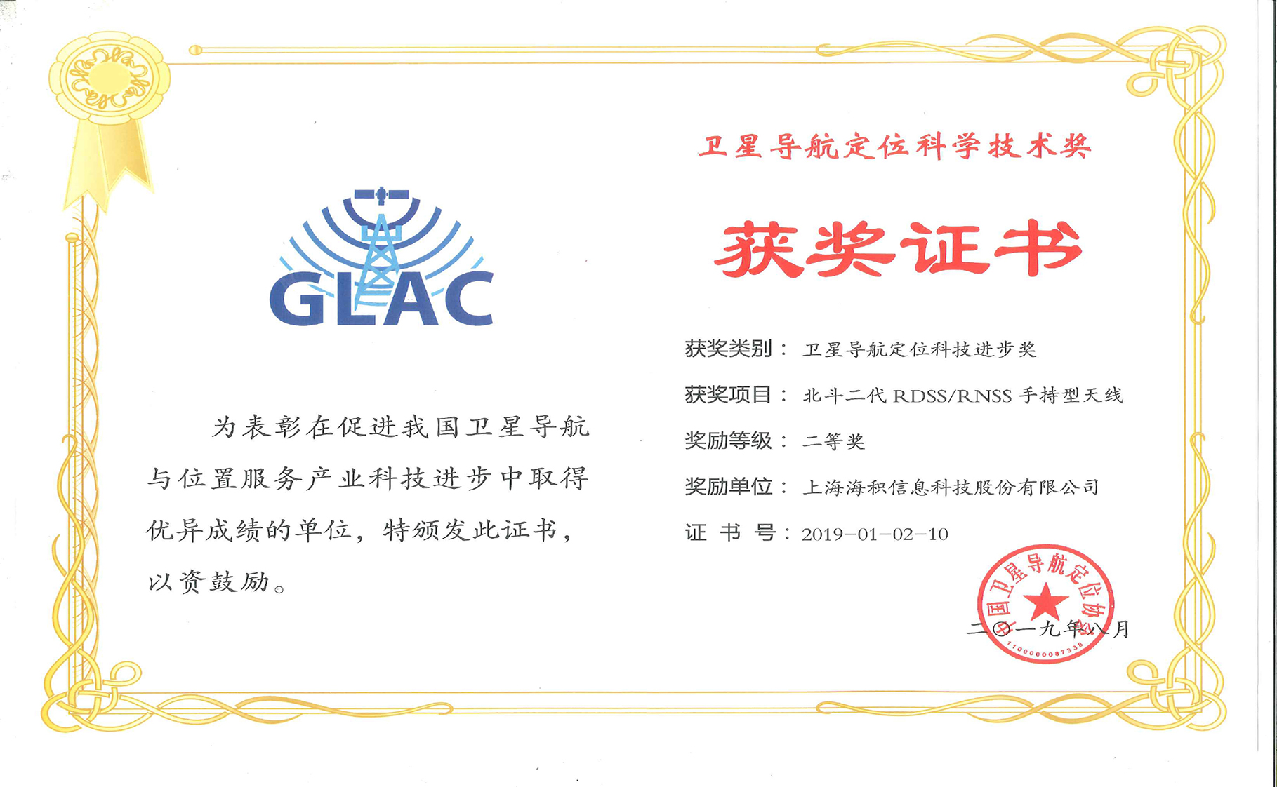 海積信息憑借在北斗天線領(lǐng)域的技術(shù)和產(chǎn)業(yè)化優(yōu)勢,榮獲“衛(wèi)星導(dǎo)航定位科技進步獎--北斗二代RDSS/QNSS手持天線二等獎。由中國衛(wèi)星導(dǎo)航專家、中國工程院譚述森院士頒發(fā)獎項。