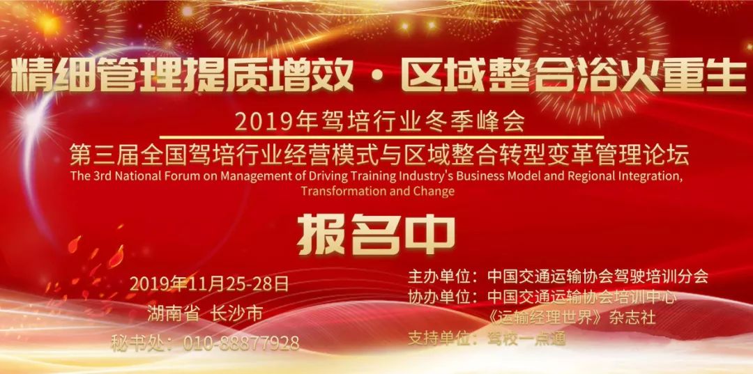 第三屆“全國駕培行業(yè)經(jīng)營模式與區(qū)域整合轉(zhuǎn)型變革管理論壇(簡稱:2019駕培行業(yè)冬季峰會)”將于今年的11月25-28日在星城-長沙市舉行。 2019駕培行業(yè)冬季峰會,海積信息誠邀駕培行業(yè)同仁相聚長沙。
