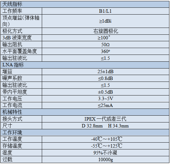 該天線可以實(shí)現(xiàn)北斗三代B1/L1導(dǎo)航定位頻段的射頻前端接收和放大處理。 抗過載設(shè)計(jì)保證裝配在引信前段