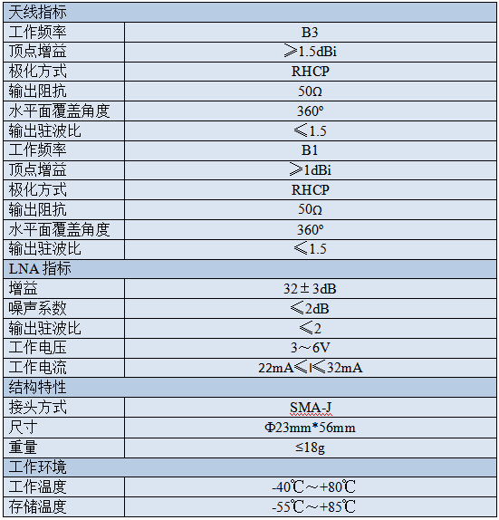 1.天線采用四臂螺旋結(jié)構(gòu),具有良好的低仰角增益、廣角圓極化特性,確保低仰角信號(hào)的接收效果; 2.天線具有穩(wěn)定的相位中心,將天線對(duì)測(cè)量誤差的影響降低到最??; 3.天線電路采用了抗干擾技術(shù),在具有一定干擾的復(fù)雜環(huán)境中仍能正常工作; 4.天線外殼具有抗高低溫沖擊、防水等特性,為天線能長(zhǎng)期在野外工作提供保障。